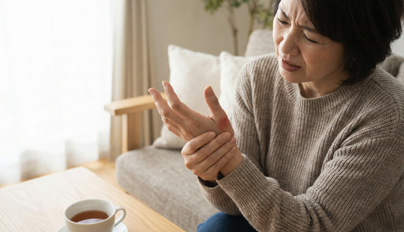 軟骨や関節包は、血液から栄養をもらって修復されます。しかし、痛みへの不安や慢性的な疲労で自律神経が乱れると、指先の血管が収縮し、組織が「酸欠」に陥ります。