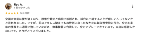 5回の施術で痛みがなくなり、全国大会に出場が決まりました!