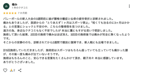 絶望の分離症・骨折、2週間で娘が試合復帰!言葉と施術に感謝。