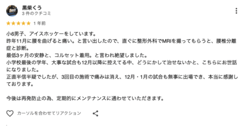 アイスホッケー小6の腰椎分離症、「3ヶ月安静」宣告からの早期試合復帰出来ました!
